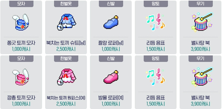 한벌옷: 북치는 토끼 슈트(남), 북치는 토끼 원피스(여)